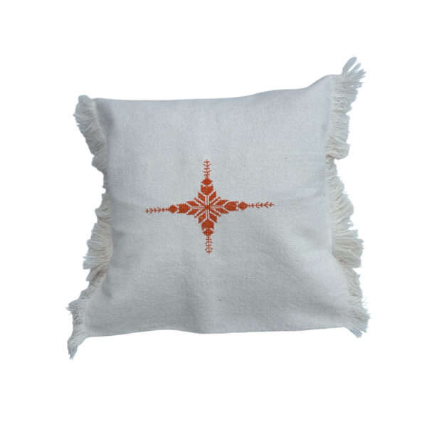 Housse de coussin très raffinée travaillé sur du keria et délicatement brodée par une Coopérative de Femmes aux portes de l’Atlas.