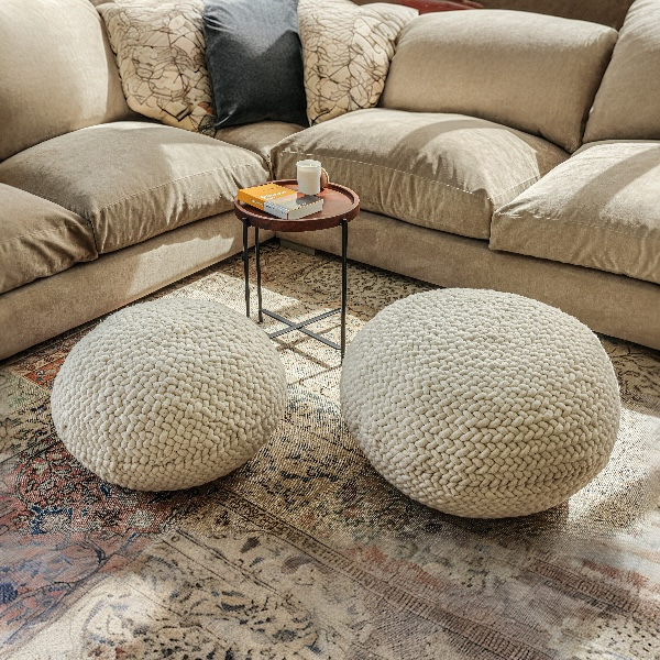 Deux sphères parfaitement formées, tressées puis garnies d’une mousse dense, sont ensuite cousues entre elles pour créer une assise ronde, douce et incroyablement confortable. On s’y pose, on s’y détend, et on réalise très vite qu’il ne s’agit pas d’un simple pouf mais d’une pièce maîtresse capable d’apporter du volume, du relief et du style à un salon, une chambre ou même un coin lecture.