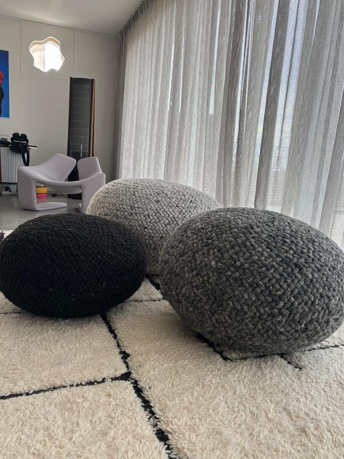 Nous produisons chaque pouf galet en laine tressée uniquement après validation. Par conséquent, le délai de fabrication est d’environ un mois.