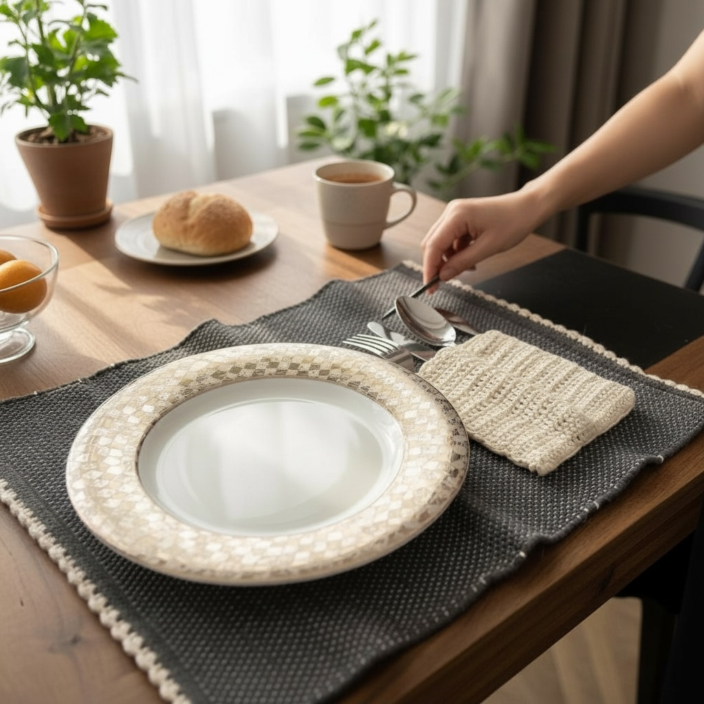 Parfait pour apporter caractère et authenticité à vos repas, ce set de table artisanal s’harmonise avec toutes les décorations, du minimaliste au plus bohème.
