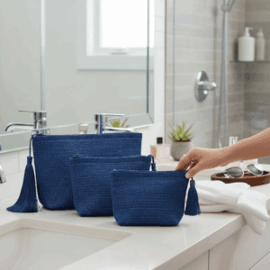 Une trousse de toilette noire conçue pour durer, même lors de voyages fréquents.
